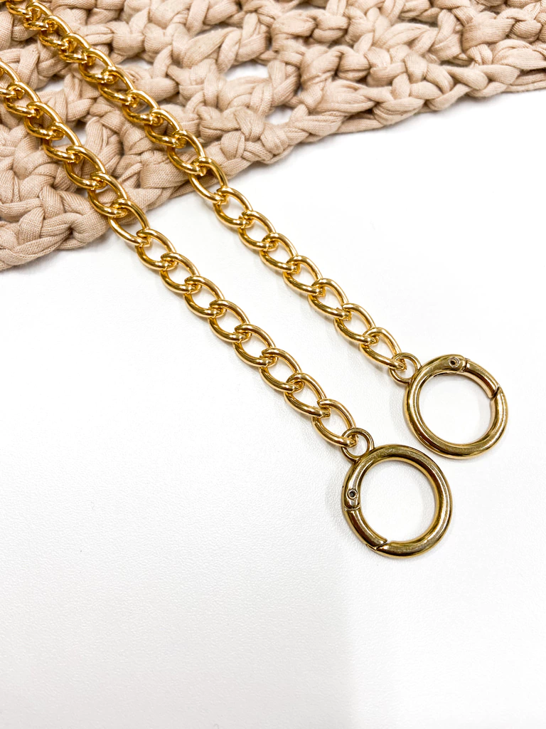 Alça com 1 metro de corrente e 2 mosquetões com banho de verniz italiano